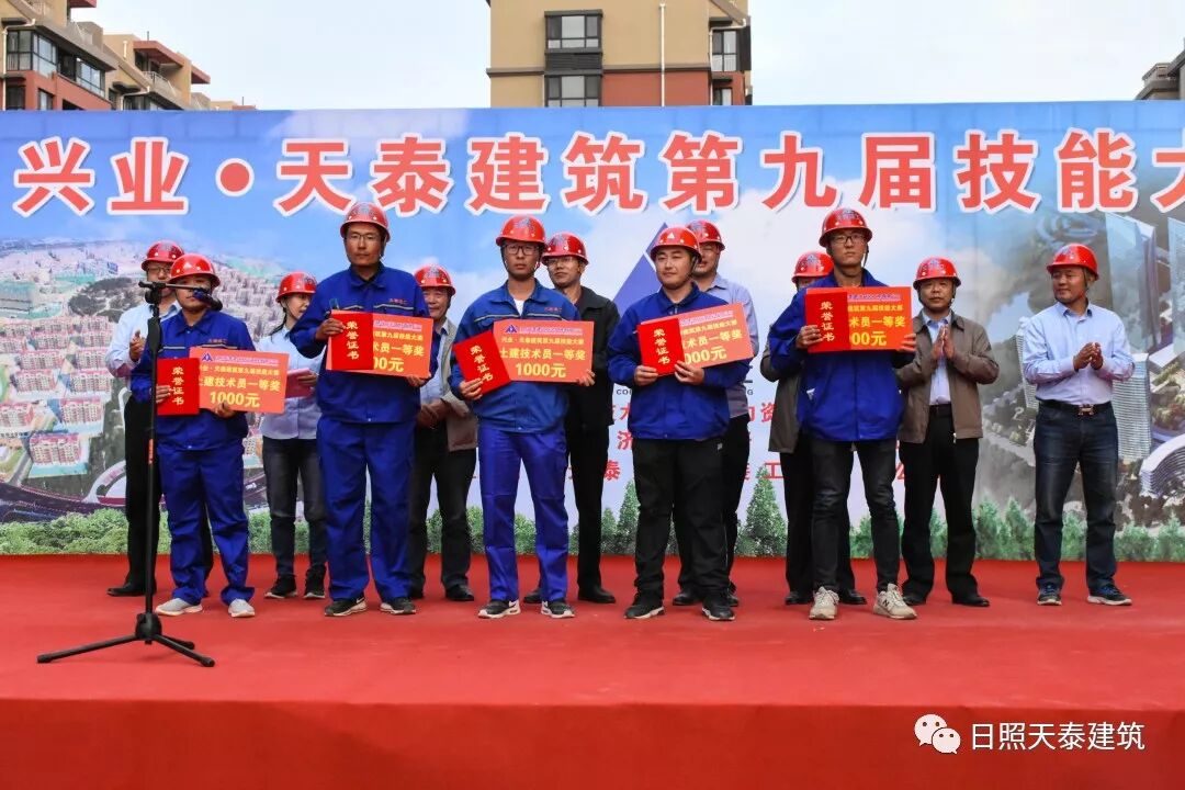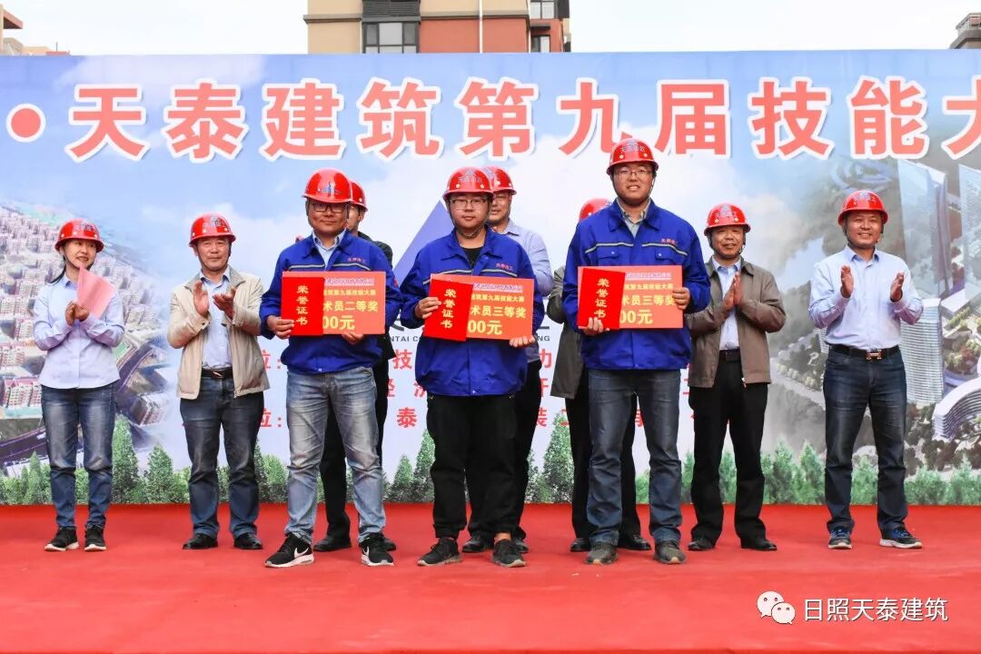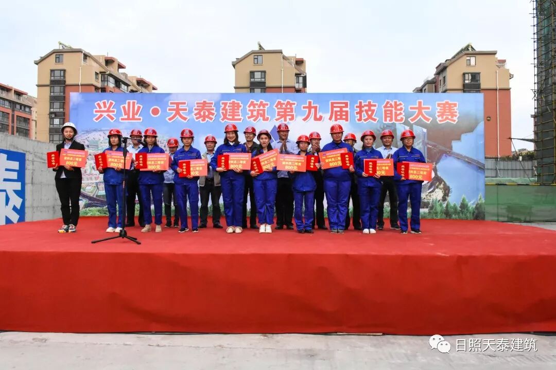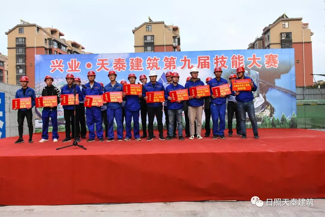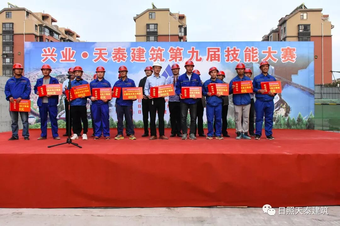 10月14日下午,興業(yè)·天泰建筑第九屆技能大賽頒獎(jiǎng)儀式在官山社區(qū)項(xiàng)目現(xiàn)場舉行,開發(fā)區(qū)管委組織部副部長、人社局局長楊祝,天泰建筑總經(jīng)理張向東,副總經(jīng)理申海泉,副總經(jīng)理、第一分公司經(jīng)理丁兆存,副總工程師王濤,工會(huì)主席牟平等領(lǐng)導(dǎo)出席了頒獎(jiǎng)儀式。本次技能大賽共有734名員工參加,比賽規(guī)模、參賽人數(shù)再創(chuàng)新高。經(jīng)過理論與實(shí)操考核,144名理論豐富、技術(shù)精湛的工匠脫穎而出,獲得獎(jiǎng)項(xiàng)。